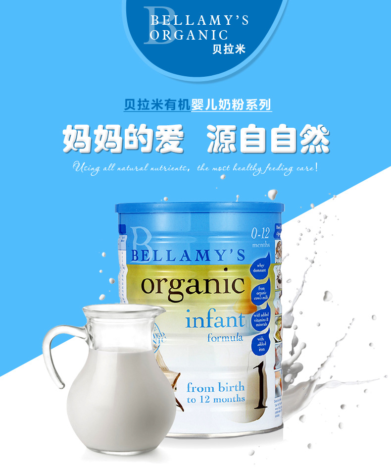1段*900g*2罐 澳洲原装贝拉米婴幼儿有机奶粉(0-12个月婴儿)
