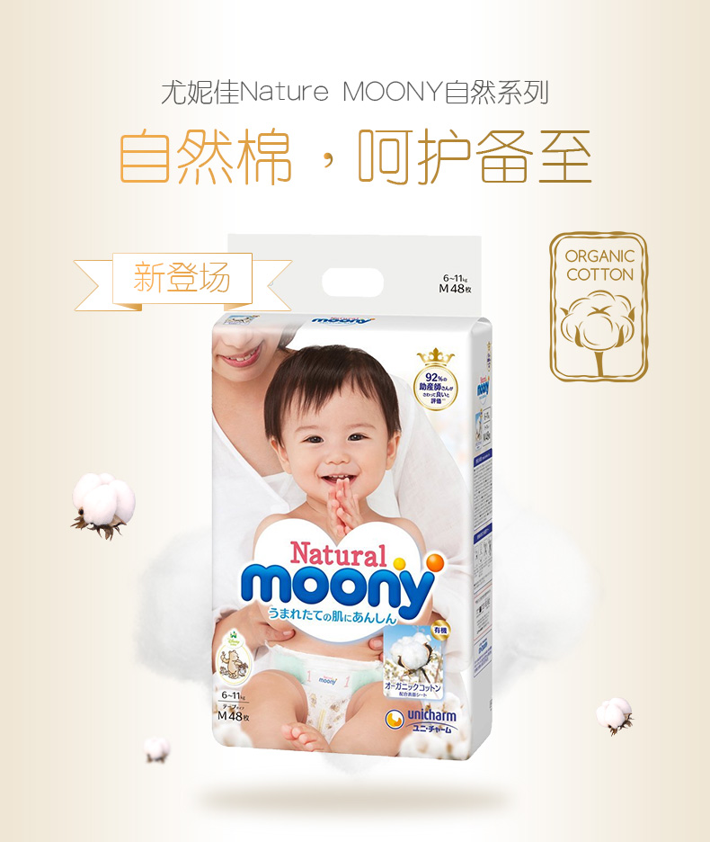 【特惠】日本本土MOONY尤妮佳高端系列纸尿裤M48*4自然系列 婴儿尿不湿