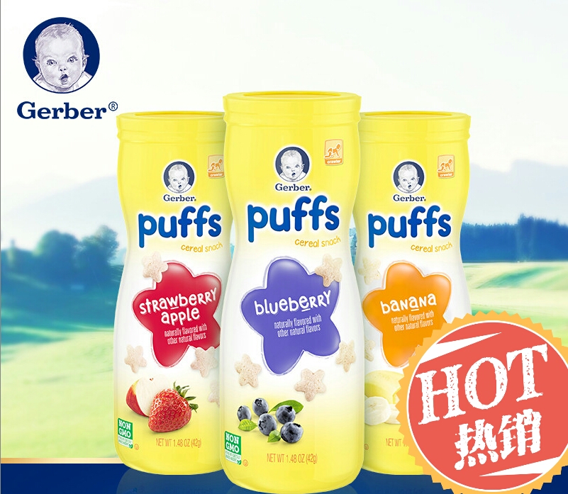 【补货中】美国Gerber嘉宝星星泡芙(蓝莓+草莓苹果+香蕉)三瓶组合42g*3