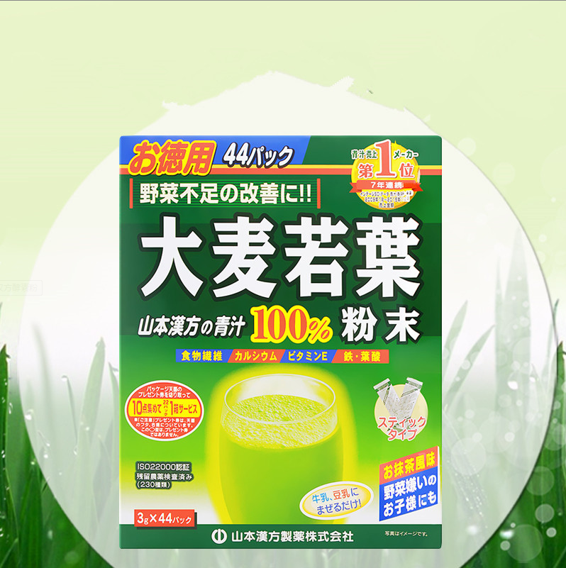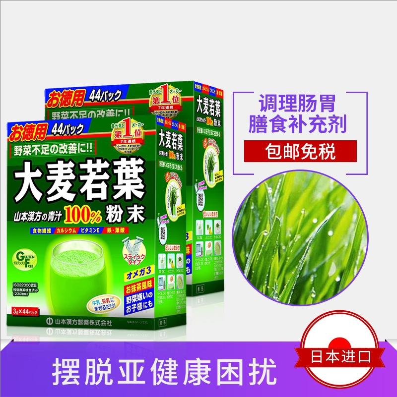日本山本汉方大麦若叶青汁3g*44袋*2盒 丰富膳食纤维 维生素 叶酸 改善便秘 肤色暗沉 平衡体内酸碱度 排除多余脂肪 促进乳汁分泌